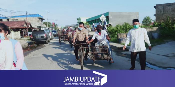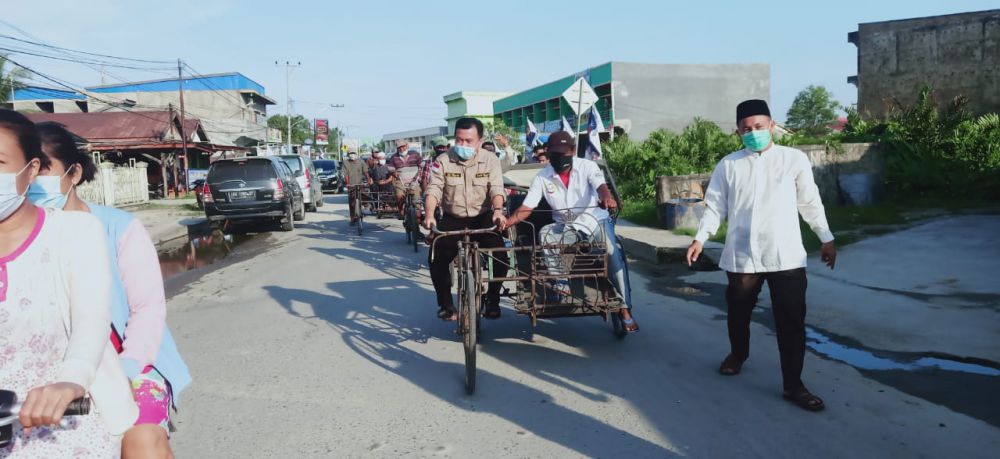 JAMBIUPDATE.CO, JAMBI- Tukang becak di kota Kuala Tungkal, Tanjabbar sempat tidak yakin dengan tawaran Al Haris yang ingin mengayuh becak.