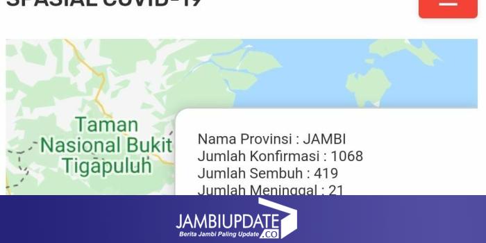 Total Covid19 di Jambi sudah 1.068 kasus. Dari angka itu, 628 masih menjalani perawatan di rumah sakit/ rumah isolasi. LAlu pasien sudah sembuh sebanyak 419 dan kasus meninggal tetap sebanyak 21.