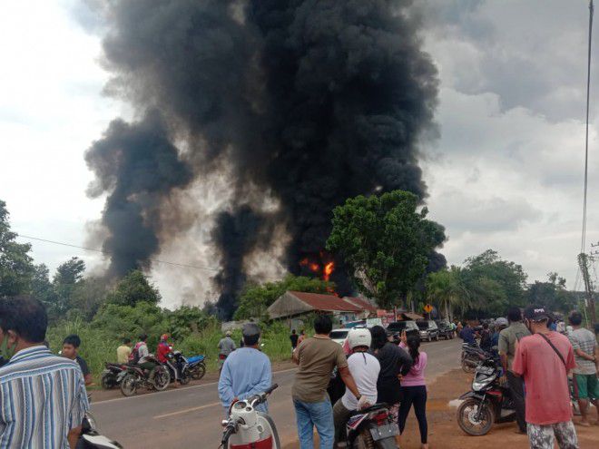 Saat ini api masih membara dan mengepulkan asap hitam.