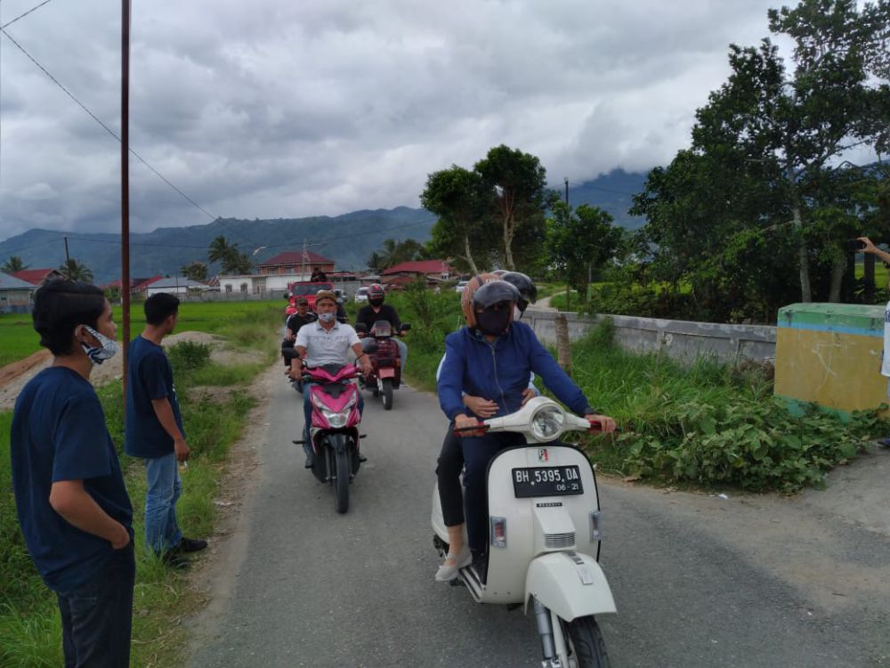 Di sela-sela blusukan ke Koto Beringin, Calon Walikota Sungai Penuh Fikar Azami Bersama Berril Dara juga terlihat mesra. Keduanya datang ke lokasi Blusukan dengan menggunakan Vespa.(adi)