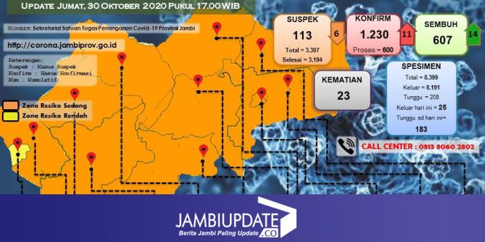 JAMBIUPDATE.CO, JAMBI- Juru bicara gugus tugas Covid19 Provinsi Jambi Johansyah menyampaikan ada tambahan 11 positif Covid19 pada hari ini, Jumat (30/10).