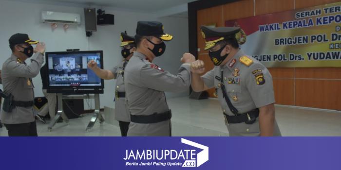 Sertijab dihadiri Pejabat Utama Polda Jambi dan perwakilan Personel Polda Jambi dengan mematuhi protokol kesehatan.