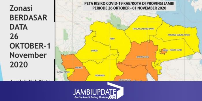 Juru bicara satgas penanganan Covid19 Provinsi Jambi Johansyah mengatakan, data ini diteliti pada perkembangan kasus rentang 26 Oktober hingga 1 November lalu. "Hasil ini berlaku hingga 11 November mendatang, ada 6 daerah yang tak zona oranye lagi dari periode sebelumnya," sampainya (4/11).