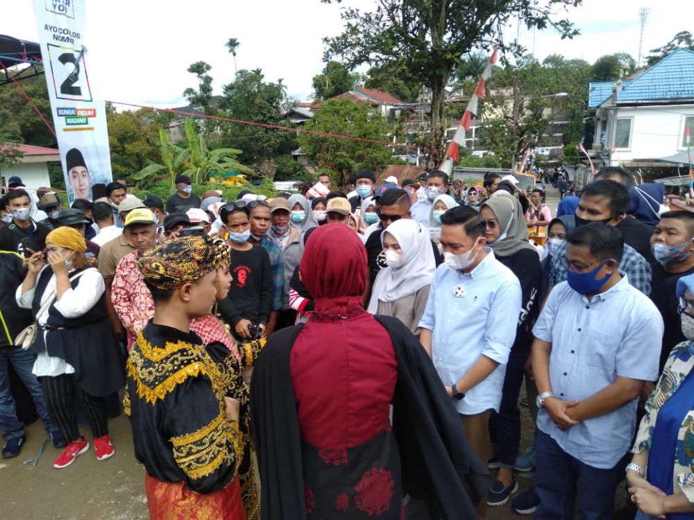 Salut dengan kedatangan Paslon nomor urut 2 kali ini. Keduanya yang didampingi isteri, disambut empat suku keturunan lengkap berpakaian adat masing-masing. Mulai dari warga Sungaipenuh, Jawa, Batak dan Minang.