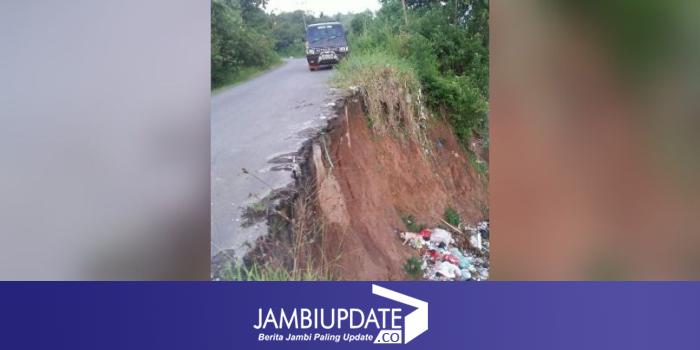 Pantauan jambiupdate.co di lapangan Senin (16/11), penahan tebing sudah ambruk dan menyebabkan sebagian badan jalan mulai amblas, bahkan sebagian lagi mulai mengalami keretakan.