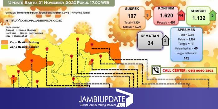 menyampaikan, terdapat penambahan positif Covid19 44 orang pada Sabtu (21/11).