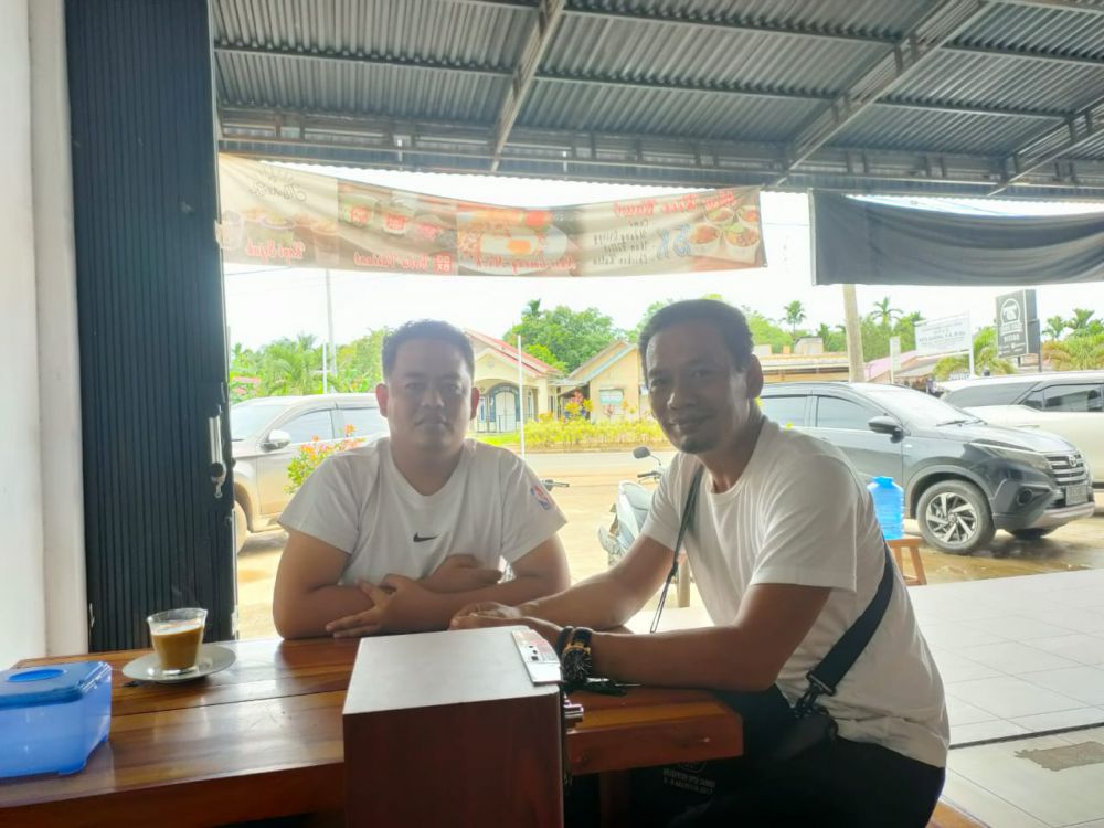 JAMBIUPDATE.CO, MUARASABAK - Tanpa sengaja diwaktu yang nyaris sama, Markaban dan Sulpani Minggu (22/11) berada di salah satu kedai kopi di kawasan Jl. Imam Bonjol Kelurahan Talang, Kecamatan Muara Sabak Barat.