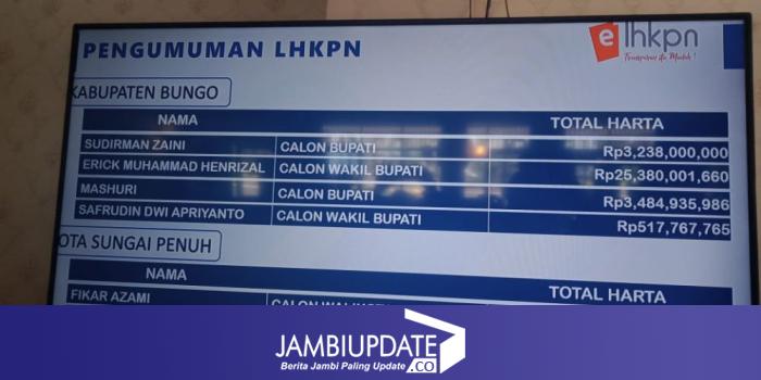 JAMBIUPDATE.CO, JAMBI-Cawako Sungai Penuh Fikar Azami punya harta kekayaan sebesar Rp. 1.438.513.891.