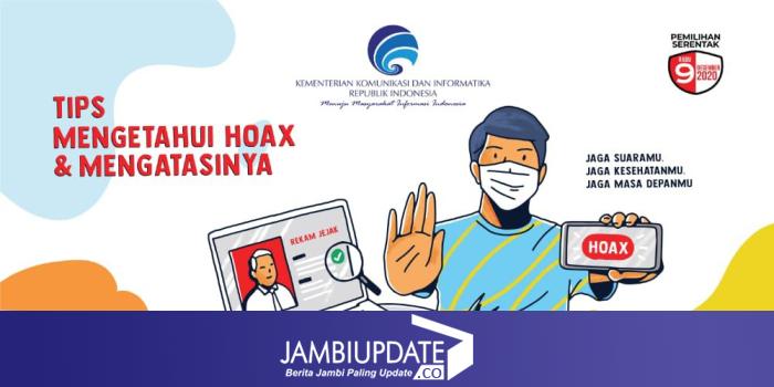 JAMBIUPDATE.CO, JAKARTA – Di tengah upaya menjaga pemilih untuk tetap sehat, Kementerian Komunikasi dan Informatika (Kemkominfo) juga memastikan ruang siber tetap sehat di dalam kegiatan Pemilihan Serentak 2020. Salah satu caranya adalah Kominfo meningkatkan koordinasi pengawasan dan penanganan terhadap konten-konten yang terkait Pemilihan Serentak 2020. Kemkominfo melakukan sinergi dengan Bawaslu untuk memastikan kualitas Pemilihan yang bersifat langsung, umum, bebas dan rahasia, (luber), dengan menjunjung asas kejujuran dan keadilan (jurdil).