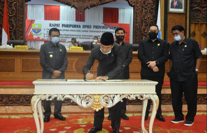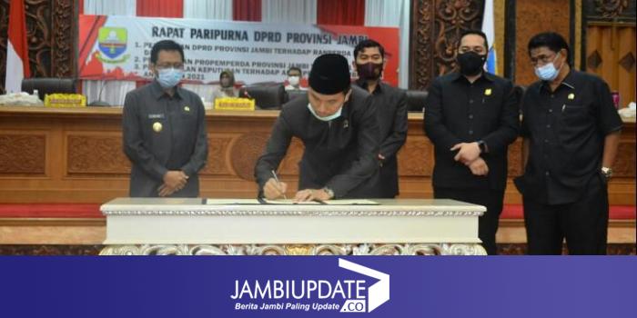 JAMBIUPDATE.CO, JAMBI - Setelah melalui pembahasan yang alot, DPRD Provinsi Jambi, Senin (30/11) malam menggelar sidang paripurna dengan agenda pengambilan keputusan dan pengesahan APBD Provinsi Jambi 2021 yang dihadiri Ketua DPRD dan tiga Wakil Ketua DPRD serta dihadiri Pjs Gubernur Jambi.