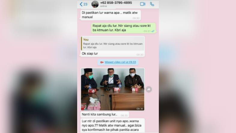 Beraninya penipu ini bahkan bisa ditelpon dengan nomor tersebut. Selain itu penipu juga memberikan foto Kemas Faried Alfarelly sedang rapat dewan dengan anggota dewan lainnya.