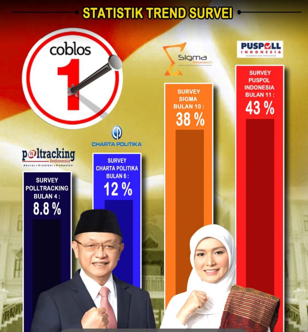 "Ingat, kemenangan Cagub dan Cawagub baru resmi ketika lembaga berwenang yang menyatakannya. Hasil survei hanya menjadi panduan pelecut motivasi," tegasnya.