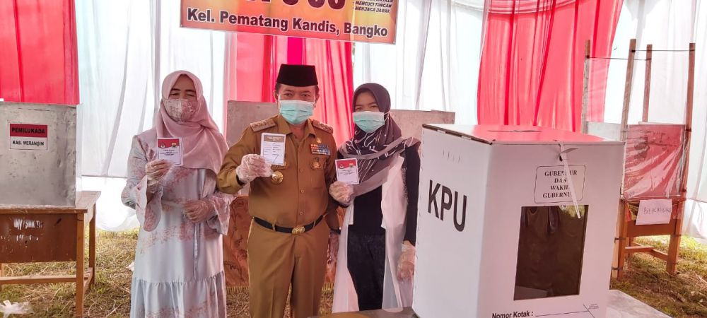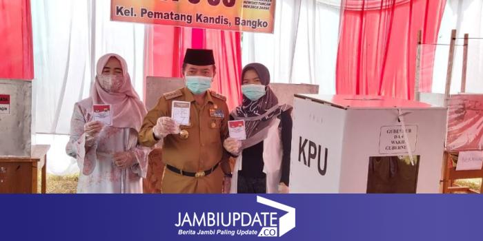 JAMBIUPDATE.CO, MERANGIN-Bupati Merangin, Al Haris, yang juga salah satu kandidat Calon Gubernur Jambi menggunakan hak pilihnya di TPS 36 Kelurahan Pematang Kandis, Kabupaten Merangin.