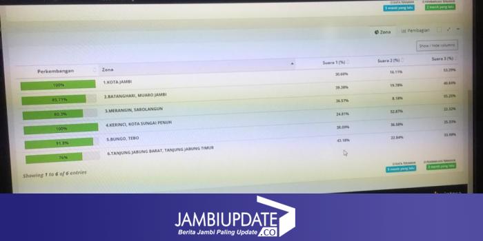 JAMBIUPDATE.CO, JAMBI - Hasil Quick Count Pilgub Jambi oleh Lingkaran Survei Indonesia (LSI), Al Haris-Abdullah Sani menang telak di sejumlah Dapil dengan suara terbanyak dalam Provinsi Jambi.