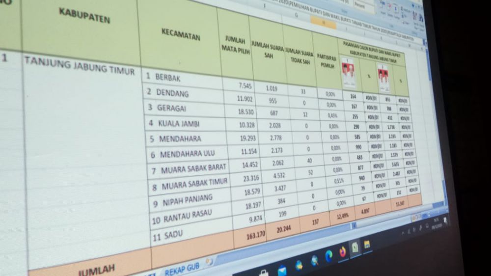 Bahkan suara Romi-Robby menang telak di 11 kecamatan. Paling banyak suara Romi-Robby berada di Kecamatan Muara Sabak Timur, yakni sebanyak 3.655 suara. Sedangkan suara paling sedikit berada di Kecamatan Sadu, yakni sebanyak 132 suara.