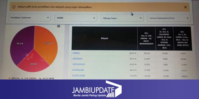 JAMBIUPDATE.CO, JAMBI-Dua pasangan calon gubernur dan wakil gubernur Jambi yakni pasangan CE-Ratu dan Haris-Sani masih bersaing ketat di Pilgub Jambi.