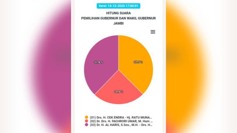 JAMBIUPDATE.CO, JAMBI- Real count C 1 Pilgub Jambi 2020 sudah mencapai angka 95,45 persen Senin (14/12) Pukul 17.00 Wib.