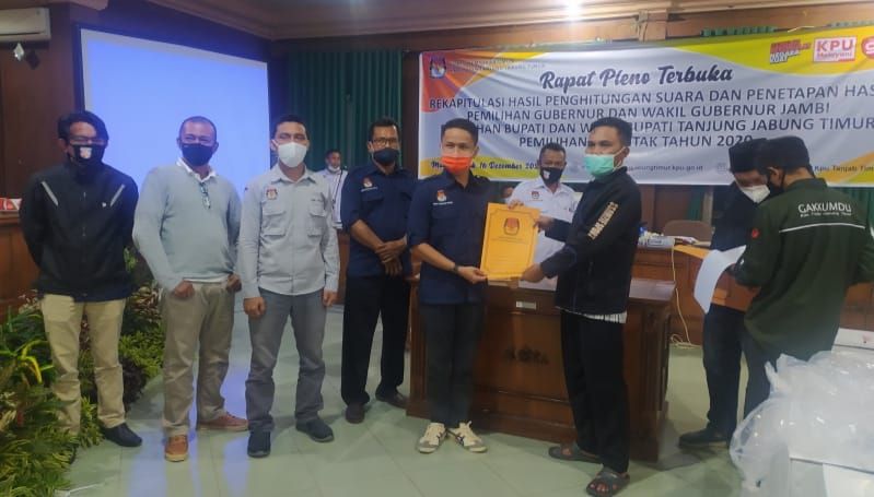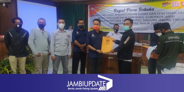 JAMBIUPDATE.CO, MUARASABAK - Rekapitulasi dan pleno penghitungan suara Pemilihan Gubernur Jambi ditingkat Komisi Pemilihan Umum (KPU) Kabupaten Tanjung Jabung Timur (Tanjabtim), telah usai dilaksanakan pada Kamis (17/12).