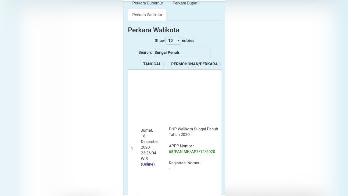 https://www.mkri.id dengan APPP nomor : 68/PAN.MK/AP3/12/2020. Gugatan ini terdaftar pada pukul 23.26 wib, tertanggal 18 Desember 2020 yang dilakukan secara online.