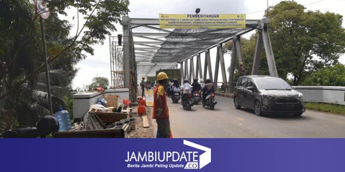 JAMBIUPDATE.CO, JAMBI - Lalu lintas di jembatan Batanghari I kembali dilakukan buka tutup jalan. Hal ini karena akan dilakukan pekerjaan pengupasan aspal selama 7 hari kedepan atau pada Selasa 5 Januari hingga 12 Januari 2020.