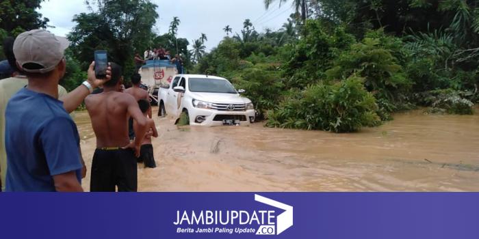 JAMBIUPDATE.CO, SAROLANGUN - Tingginya curah hujan di Kabupaten Sarolangun, membuat sebagain daerah kembali terdampak banjir. Seperti di desa Temenggung, kecamatan Limun. Akibat luapan sungai Batang Limun, tiga titik jalan tengelam, kejadian tersebut terjadi pada sabtu (9/1).
