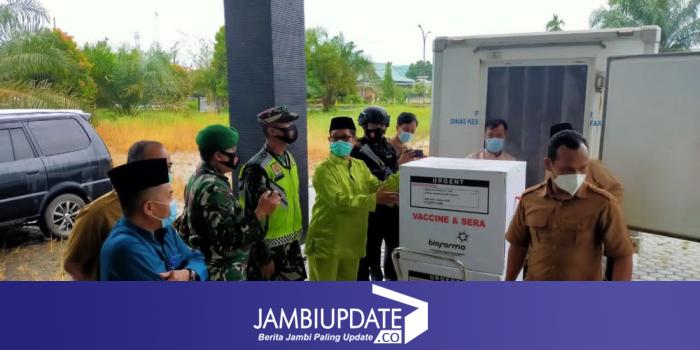 Vaksin ini sejak di berangkatkan dari Gudang Provinsi Jambi di bilangan Telanai menuju Perkantoran Bupati dikawal oleh aparat kepolisian.