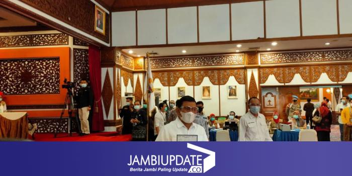 JAMBIUPDATE.CO, JAMBI - Dua pimpinan DPRD Provinsi Jambi mejalani vaksinasi Covid-19 di Rumah Dinas Gubernur Jambi (14/1). Kedua pimpinan itu ialah Rocky Candra dan Pinto Jayanegera.