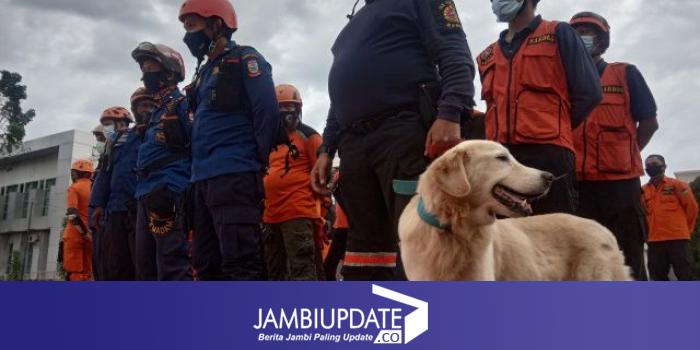 JAMBIUPDATE.CO, MAMUJU — Satu ekor anjing pelacak dari Jakarta Rescue Dog Team diturunkan ke lokasi gempa di Kabupaten Mamuju, Sulawesi Barat (Sulbar), Minggu pagi (17/1/2021).