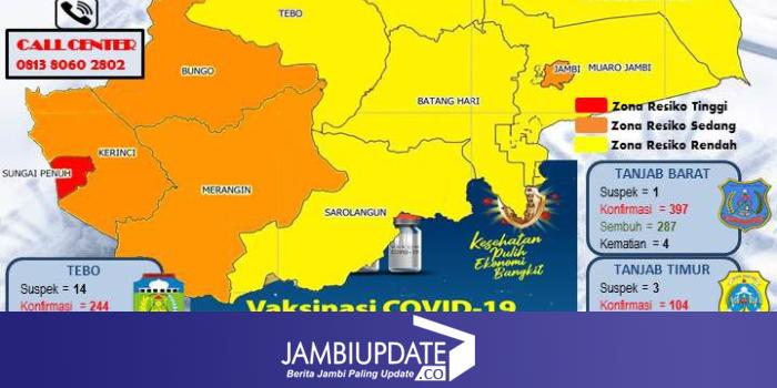 Untuk penambahan pada kemarin, dari 49 orang terbanyak berasal dari Kabupaten Bungo 19 orang. Diikuti berurutan, Kota Jambi 18 orang, Tanjab barat 6 orang, Batanghari 3 orang, Tebo 2 orang, Muaro Jambi 1 orang. "Keterangan pasien diantaranya hasil swab di Padang, hasil screening antigen positif, dan riwayat kontak dari pasien terdahulu," jelas Johansyah.