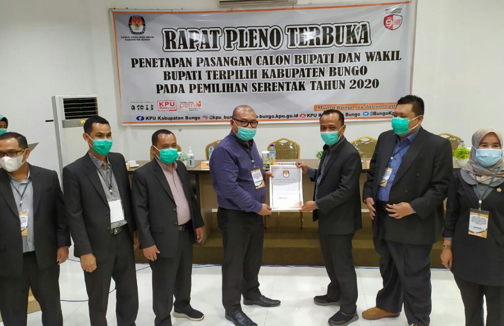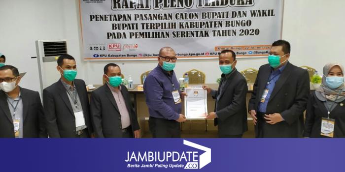 JAMBIUPDATE.CO, MUARA BUNGO - Komisi Pemilihan Umum (KPU) Kabupaten Bungo menggelar rapat pleno terbuka penetapan pasangan calon Bupati dan Wakil Bupati terpilih Kabupaten Bungo pada pemilihan serentak tahun 2020, Jumat (22/1).