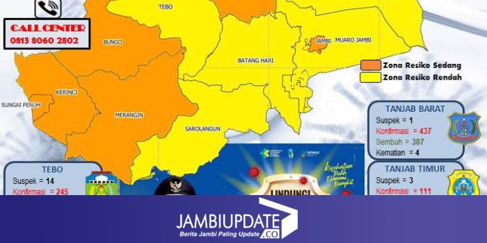 Juru bicara satgas penanganan Covid-19 Provinsi Jambi Johansyah mengatakan, dari 38 pasien tambahan terbanyak berasal dari Kota Jambi 26 orang. Lalu diikuti Kabupaten Bungo 11 orang, dan Muaro Jambi 1 orang.