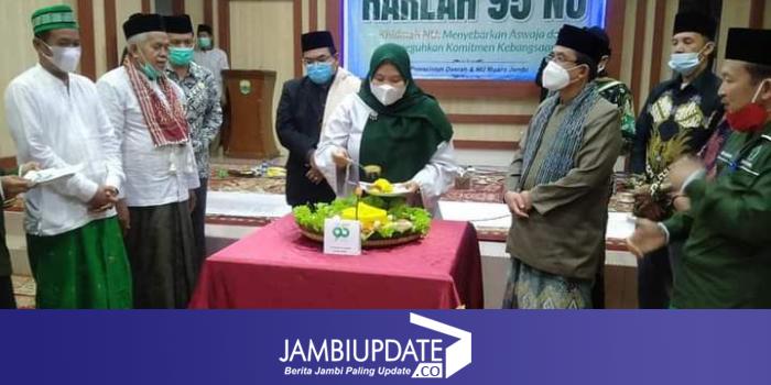 Bupati Masnah saat hadiri acara Harlah NU ini, juga di dampingi langsung oleh sang suami H Hendri Cahyadi Arifin dan juga segenap Kepala OPD lingkup Muaro Jambi.