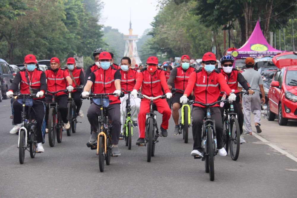 JAMBIUPDATE.CO, JAMBI - DPD PDI Perjuangan Provinsi Jambi menggelar kegiatan gowes bersama PDI Perjuangan pada Minggu (28/2/2021).