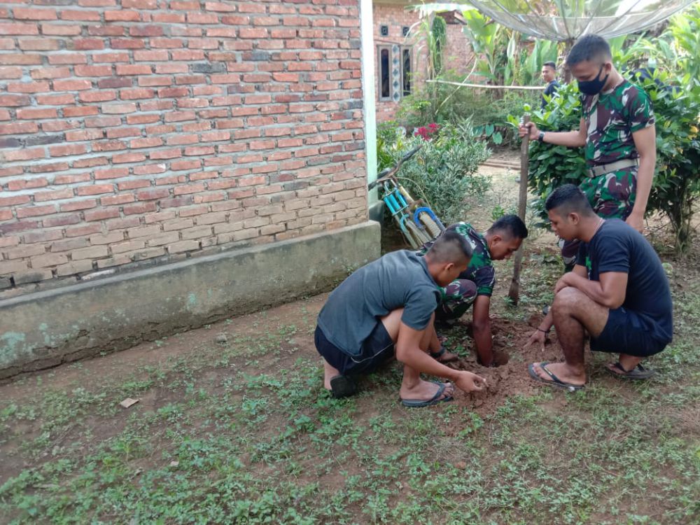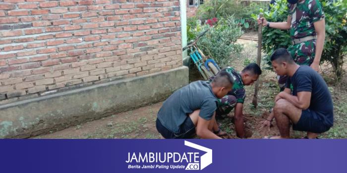 JAMBIUPDATE.CO, JAMBI – Satgas TMMD ke 110 Kodim 0415/Batanghari membantu orang tua asuh, dalam membuat tempat jemuran pakaian di halaman rumahnya, di kawasan RT 07 Desa Sungaiterap, Kecamatan Kumpehulu, Kabupaten Muarojambi, Jumat (5/3/2021) pagi.