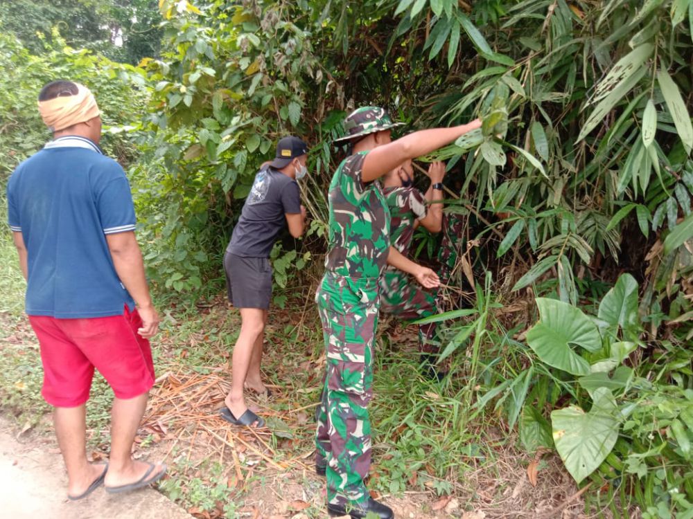 JAMBIUPDATE.CO, JAMBI – Mempunyai hobi yang sama, yakni memancing, Satgas TMMD ke 110 Kodim 0415/Batanghari di Desa Sungaiterap, mencari bahan untuk membuat stik pancingan, Jumat (5/3/2021) siang.