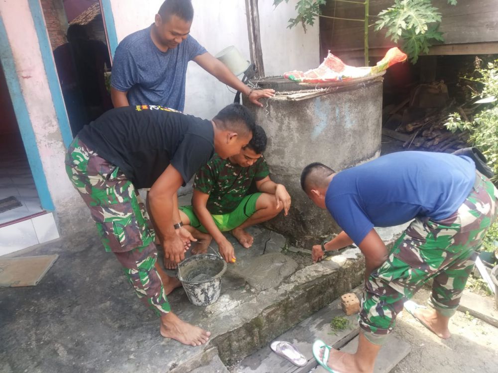 Penyemanan itu dilakukan lantaran di dekat sumur halaman rumah tampak bolong. Dengan inisiatif sendiri, Satgas TMMD langsung memperbaikinnya.