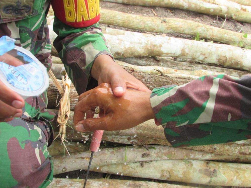 Satgas TMMD yang disengat tawon itu, lantaran masuk ke hutan bersama warga Desa Sungaiterap, dalam mencari kayu pelangas yang akan dibuat menjadi gelagar di lahan gambut penghubung dua desa.