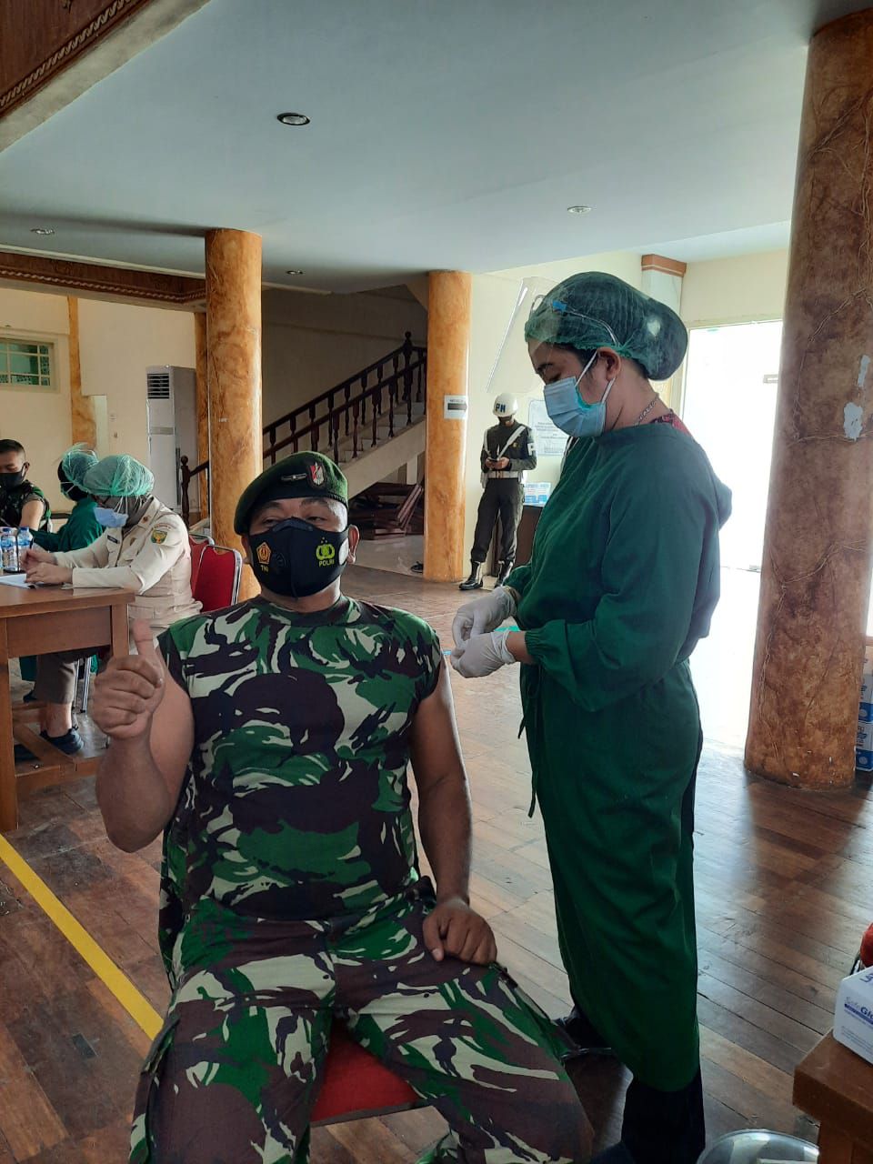 “Kegiatan vaksinasi ini dilaksanakan serentak merupakan perintah dari Komando Atas. Tujuannya untuk mengatasi pandemi Covid-19. Setelah selesai disuntik, prajurit diminta untuk menunggu selama 30 menit lalu diberikan surat bukti telah divaksinasi. Kemudian akan menjalani proses vaksinasi kedua setelah 14 hari", ungkapnya.
