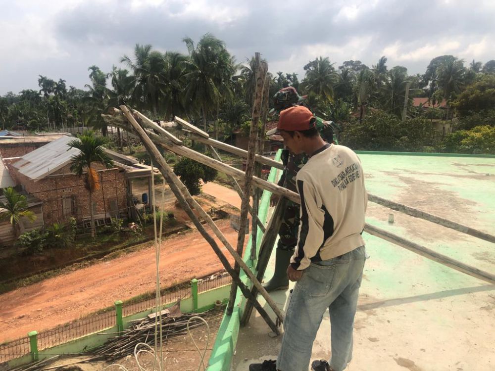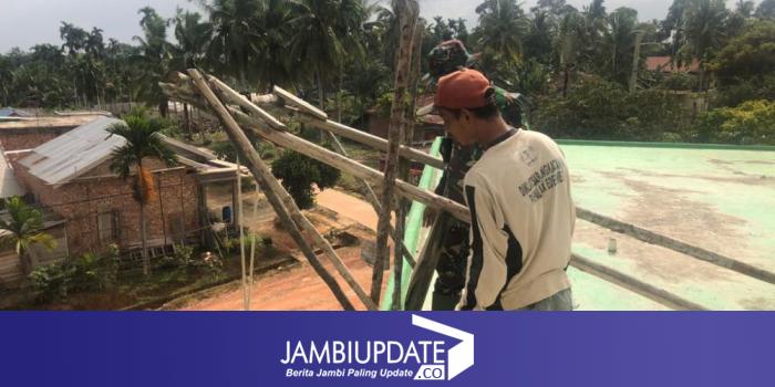 JAMBIUPDATE.CO, JAMBI - Satgas TMMD ke 110 Kodim 0415/Batanghari bantu warga merehab masjid Raudatul Hassanah, di Desa Mekarjaya, Minggu (14/3/2021).