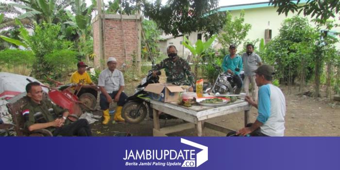 JAMBIUPDATE.CO, JAMBI - Kedekatakan Dan SSK, Kapten Inf Rilman dan warga Desa Sungaiterap, dalam program TMMD ke 110 Kodim 0415/Batanghari, Senin (15/3/2021).