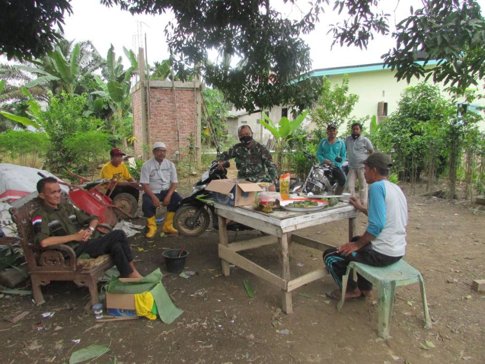 Pagi itu, Dan SSK yang tengah duduk di halaman belakang rumah Kades Desa Sungaiterap, untuk membahas kegiatan setiap hari selama program TMMD ke 110 Kodim 0415/Batanghari berlangsung.