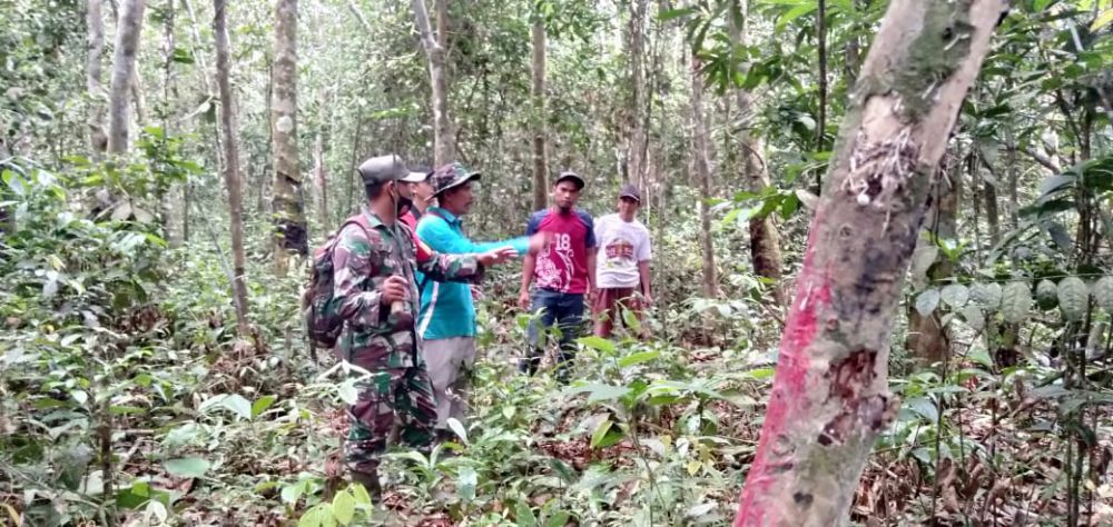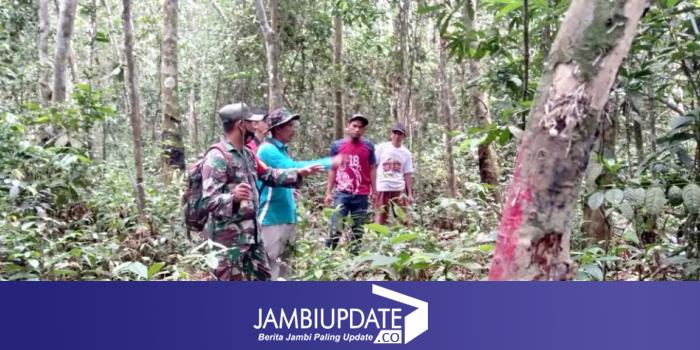 JAMBIUPDATE.CO, JAMBI - Satgas TMMD ke 110 Kodim 0415/Batanghari, bersama warga Desa Sungaiterap dan Desa Sungaigelam melakukan survei jalur atau merintis hutan sejauh 1.8 Kilometer, yang akan diterobos dalam program TMMD ke 110 Kodim 0415/Batanghari, Selasa (16/3/2021).