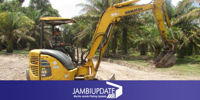 JAMBIUPDATE.CO, JAMBI - Satgas TMMD ke 110 Kodim 0415/Batanghari, gunakan alat berat untuk membawa kayu yang digunakan untuk dibuat galar, Kamis (18/3/2021).