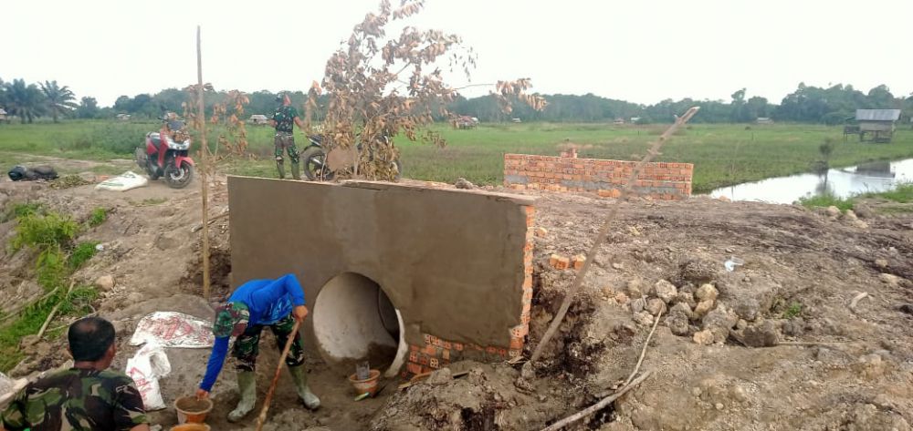 JAMBIUPDATE.CO, JAMBI – Gorong-gorong dalam program TMMD ke 110 Kodim 0415/Batanghari dibuatkan cloning (dinding penguat) oleh Satgas TMDD, di Desa Sungaiterap, Jumat (19/3/2021).