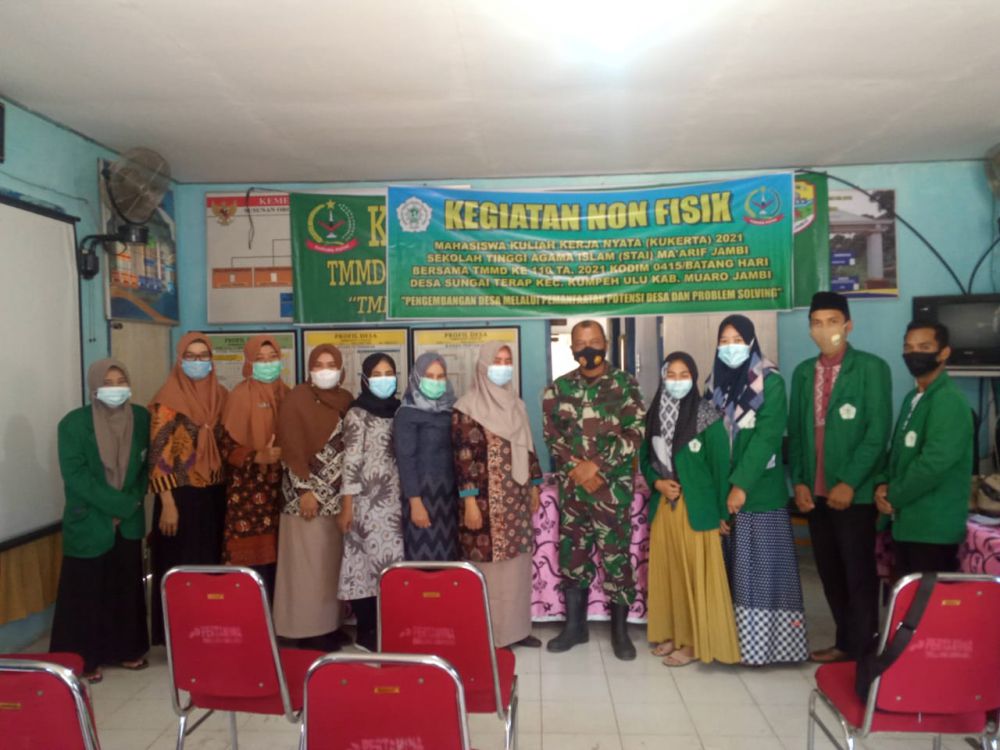 JAMBIUPDATE.CO, JAMBI – Mahasiwa STAI Ma’arif yang tengah Kuliah Kerja Nyata di Desa Sungaiterap, Mendukung penuh program TMMD ke 110 Kodim 0415/Batanghari dalam kegiatan fisik maupun non fisik.