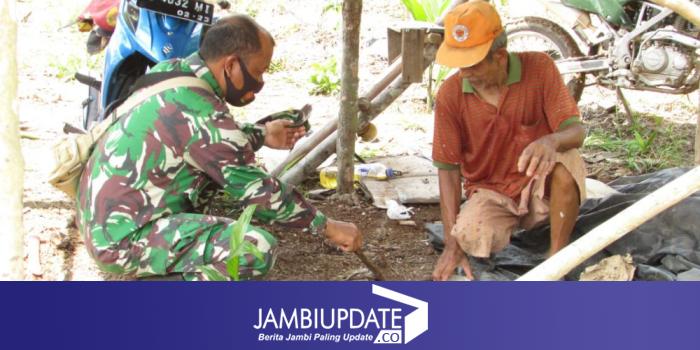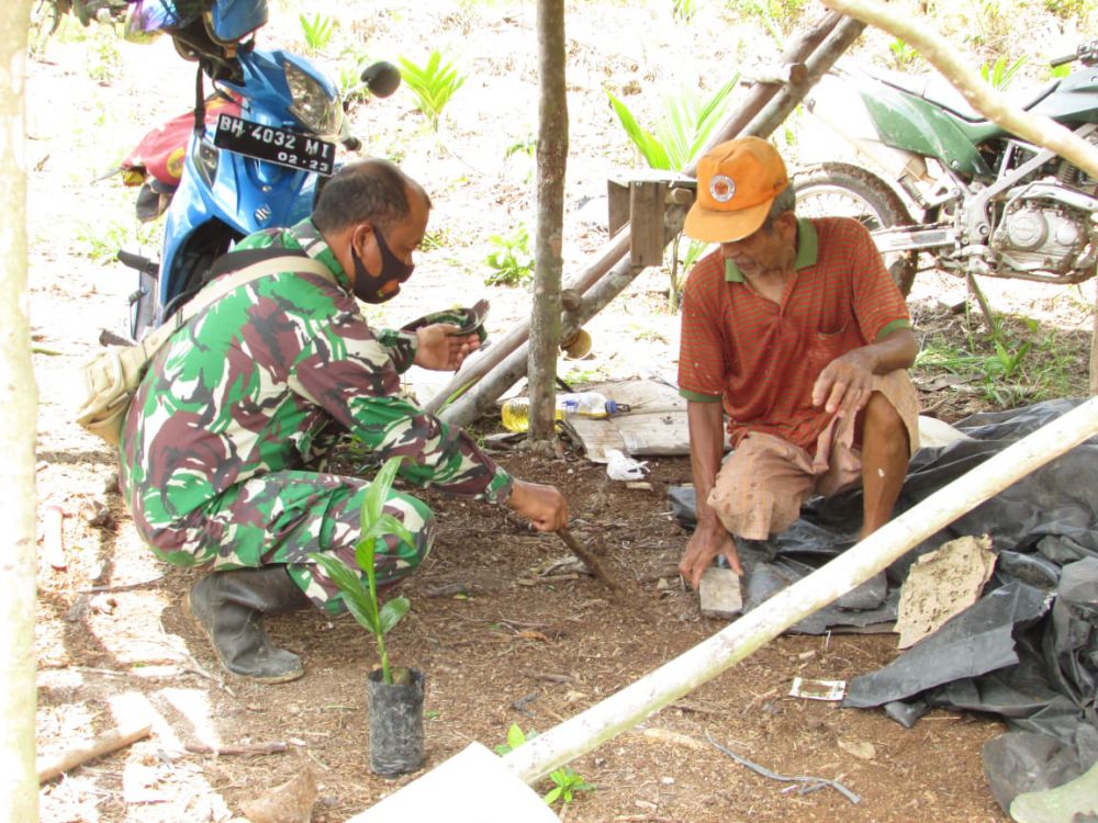 Pantauan di lapangan, Dan SSK, Kapten Inf Rilman itu belajar menamam pinang bersama salah satu warga Desa Sungaigelam, yakni Gani (66).