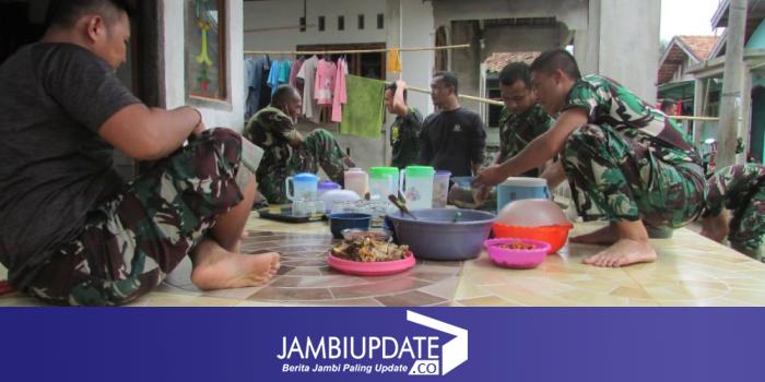 Kaur Bhakti Kodim 0415/Batanghari, Kapten Inf Suyadi, menerangkan, bahwa makan siang tersebut disiapkan oleh warga Desa Sungaiterap yang rumahnya dibedah.