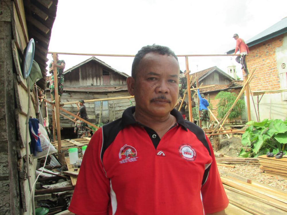 JAMBIUPDATE.CO, JAMBI - Sulaiman (48) warga RT 05 Desa Sungaiterap, senang, lantaran rumahnya dibedah dalam program TMMD ke 110 Kodim 0415/Batanghari.