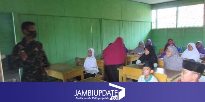 JAMBIUPDATE.CO, JAMBI - Satgas TMMD ke 110 Kodim 0415/Batanghari di Desa Sungaiterap berikan hadiah ke anak-anak Madrasah Jauharul Falah, lantaran hapal Pancasila.