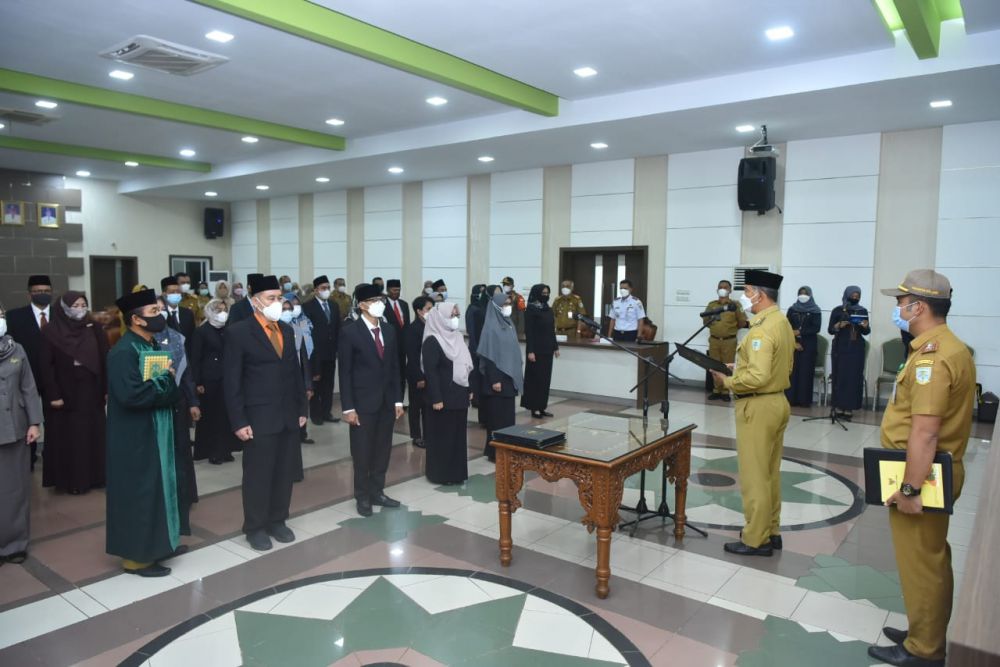 Sebanyak 34 orang Pejabat Fungsional di lingkungan Pemerintah Kota Jambi resmi dilantik oleh Walikota Jambi Syarif Fasha, Senin (5/4). Pajabat Fungsional Tertentu yang dilantik tersebut terdiri dari pejabat Arsiparis, Auditor, Penera dan Penyuluh Sosial.